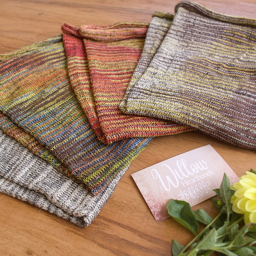 MATERIAL: These bands are made entirely out of cotton with an elastic thread running through the cotton knit every 5mm's or so. This ensures the band has excellent stretch and remains secure on your head. The ends of the fabric are left raw so that they naturally roll up to finish off each end, eliminating the need for seams and hems. Occasionally, some excess fibres from the ends may shed initially, however, this soon settles.