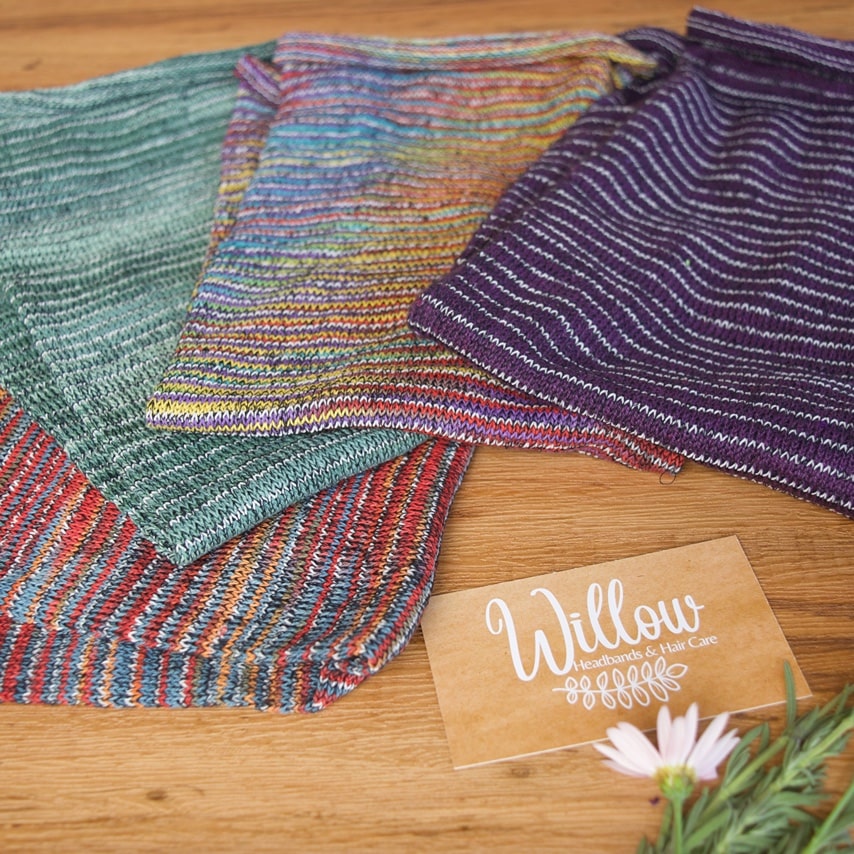 MATERIAL: These bands are made entirely out of cotton with an elastic thread running through the cotton knit every 5mm's or so. This ensures the band has excellent stretch and remains secure on your head. The ends of the fabric are left raw so that they naturally roll up to finish off each end, eliminating the need for seams and hems. Occasionally, some excess fibres from the ends may shed initially, however, this soon settles.